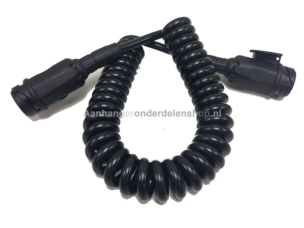 Degelijke slijtvaste spiraalkabel, 13 polige menbers stekkers met zware rubbere tule's, Een 8 polige kabel met 13 polige stekker voldoet aan de voeding voor standaard aanhangerverlichting.